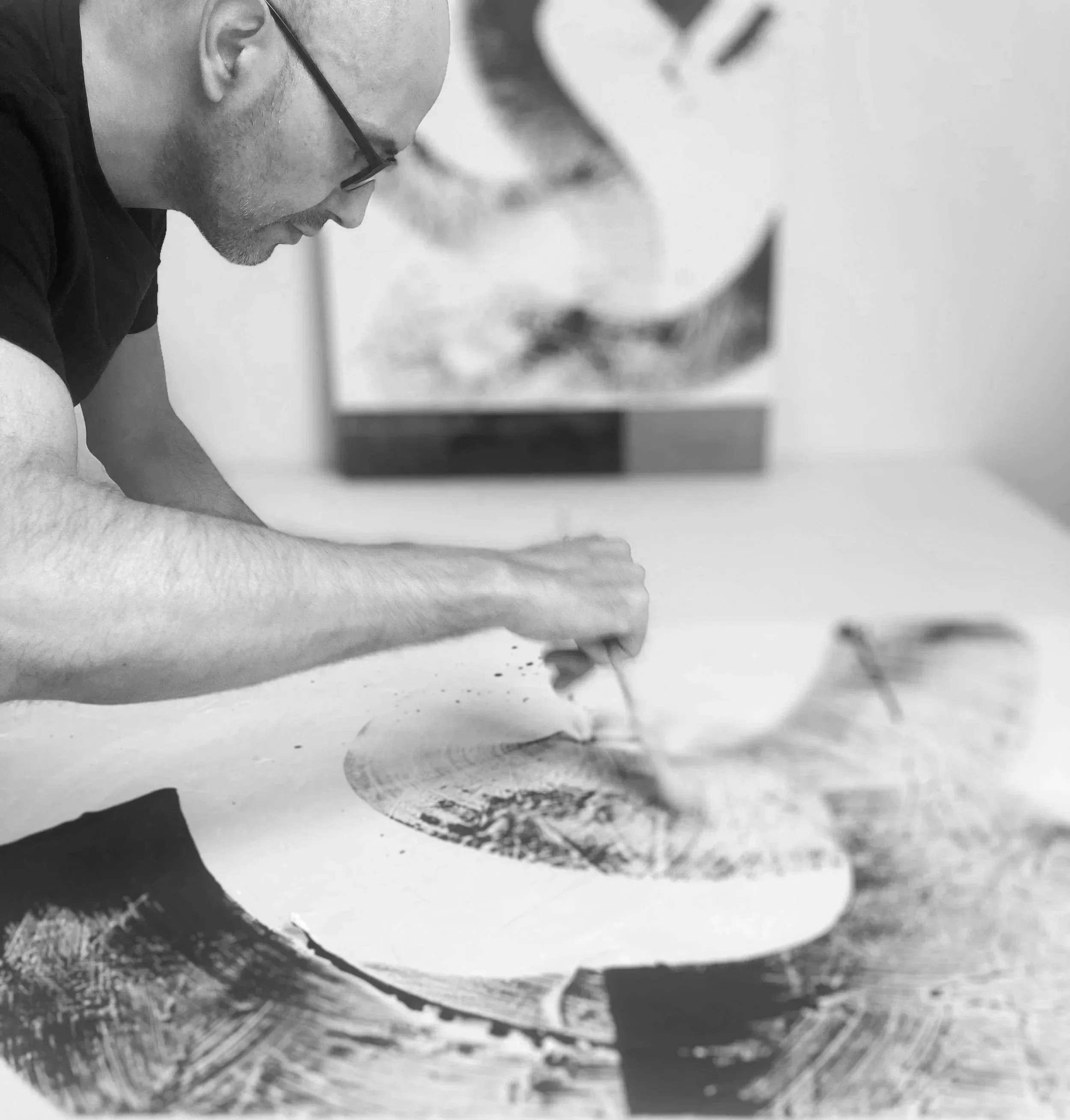 Jair Nino is a Barcelona-based artist who collects discarded fragments of nature from his surroundings and merges them with organic materials to create abstract paintings. With a background in design, branding, photography, and printmaking, his creative practice has evolved in recent years into a thoughtful exploration of eco-sustainable mixed-media art.