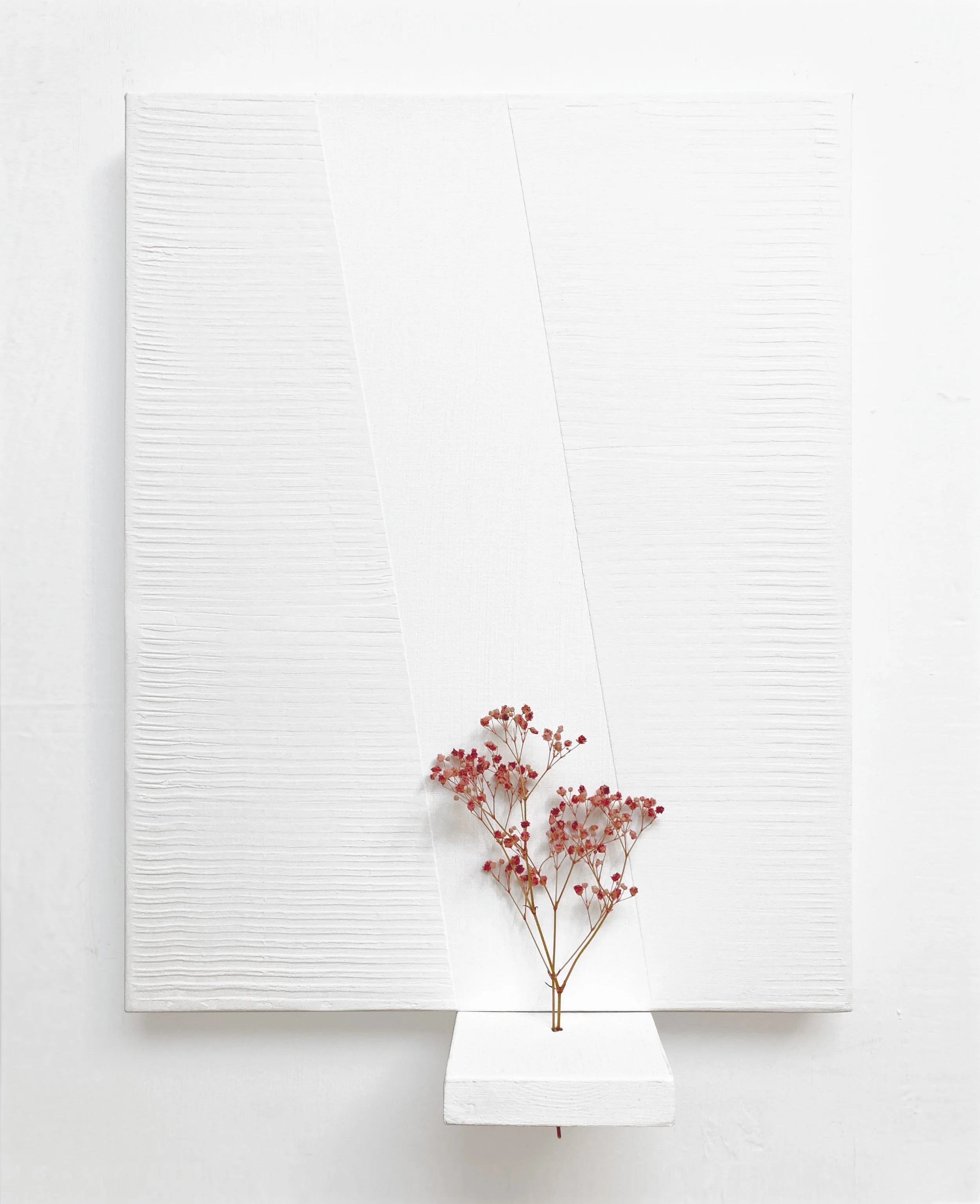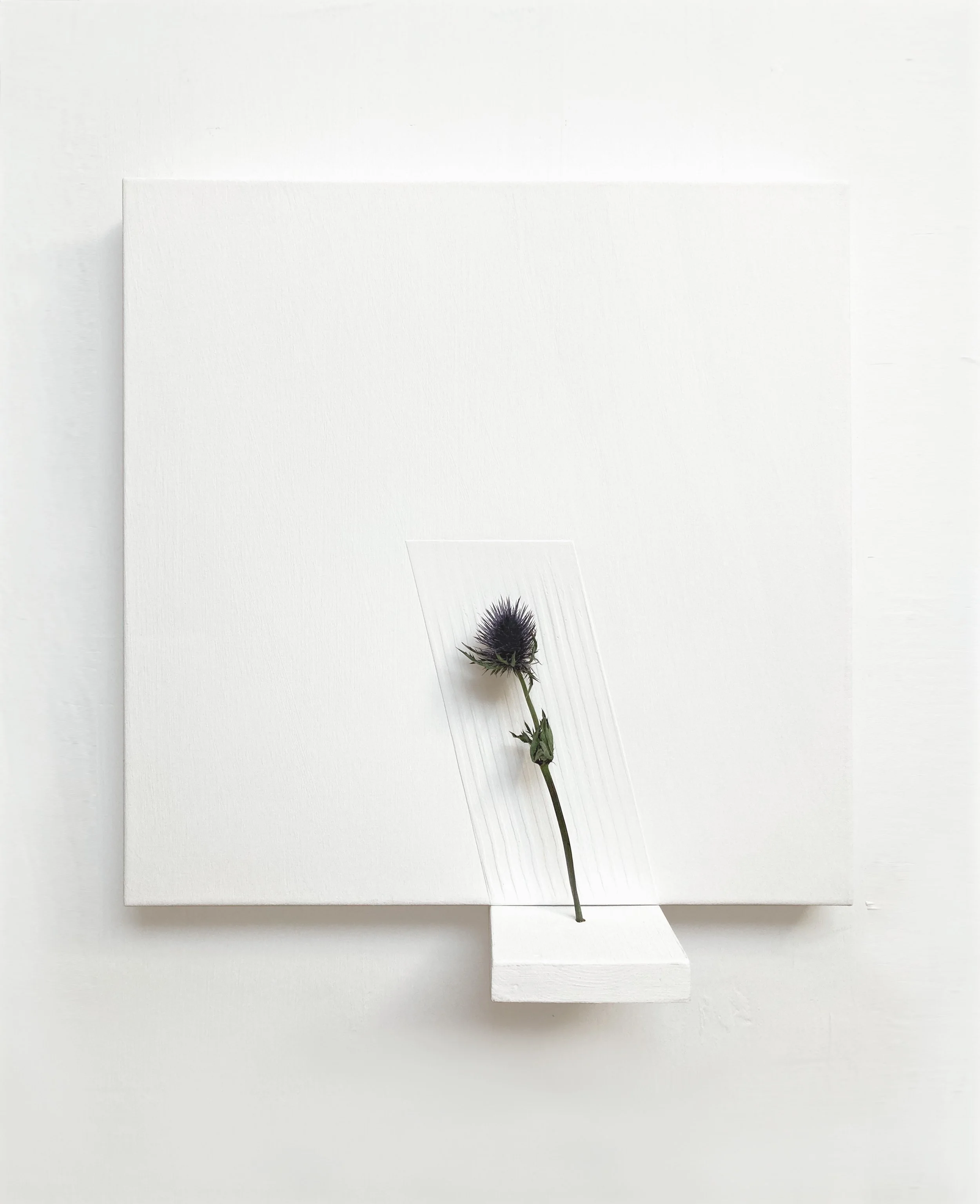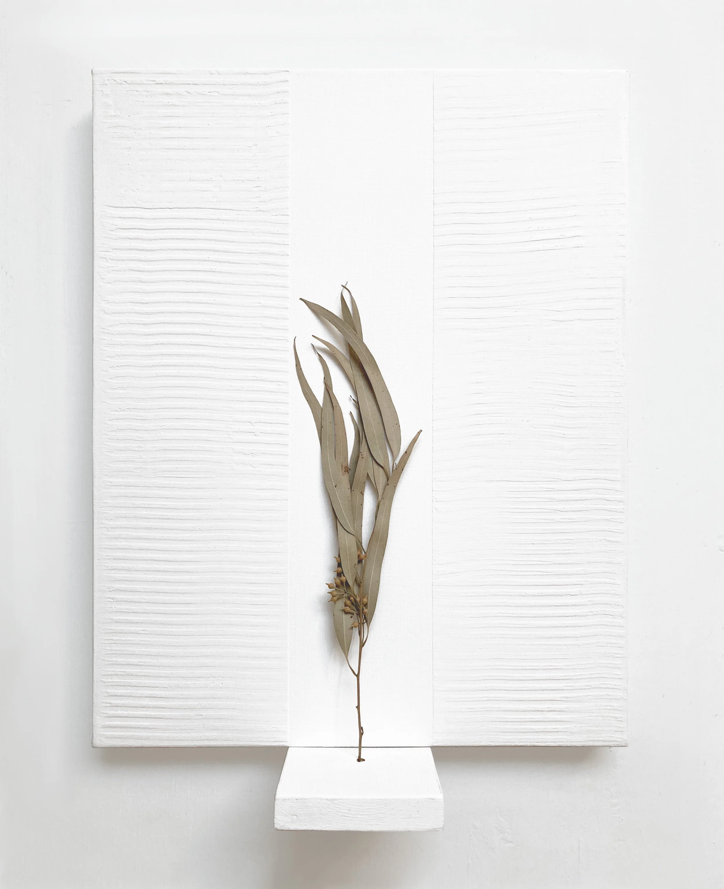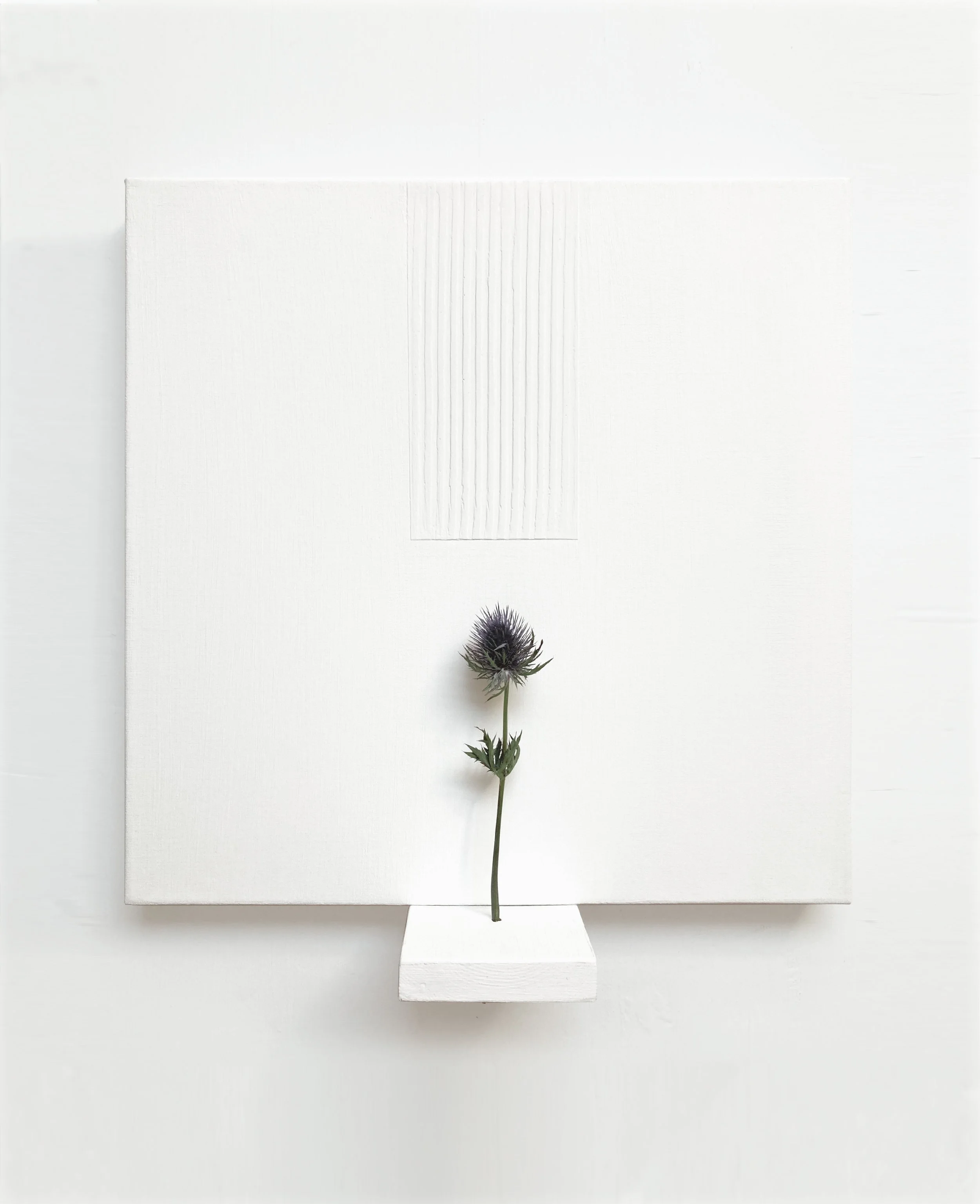Alabaster #01 I Organic paint on canvas - 45 x 35 x 3.5 cm + wooden stand - 11 x 9.5 cm